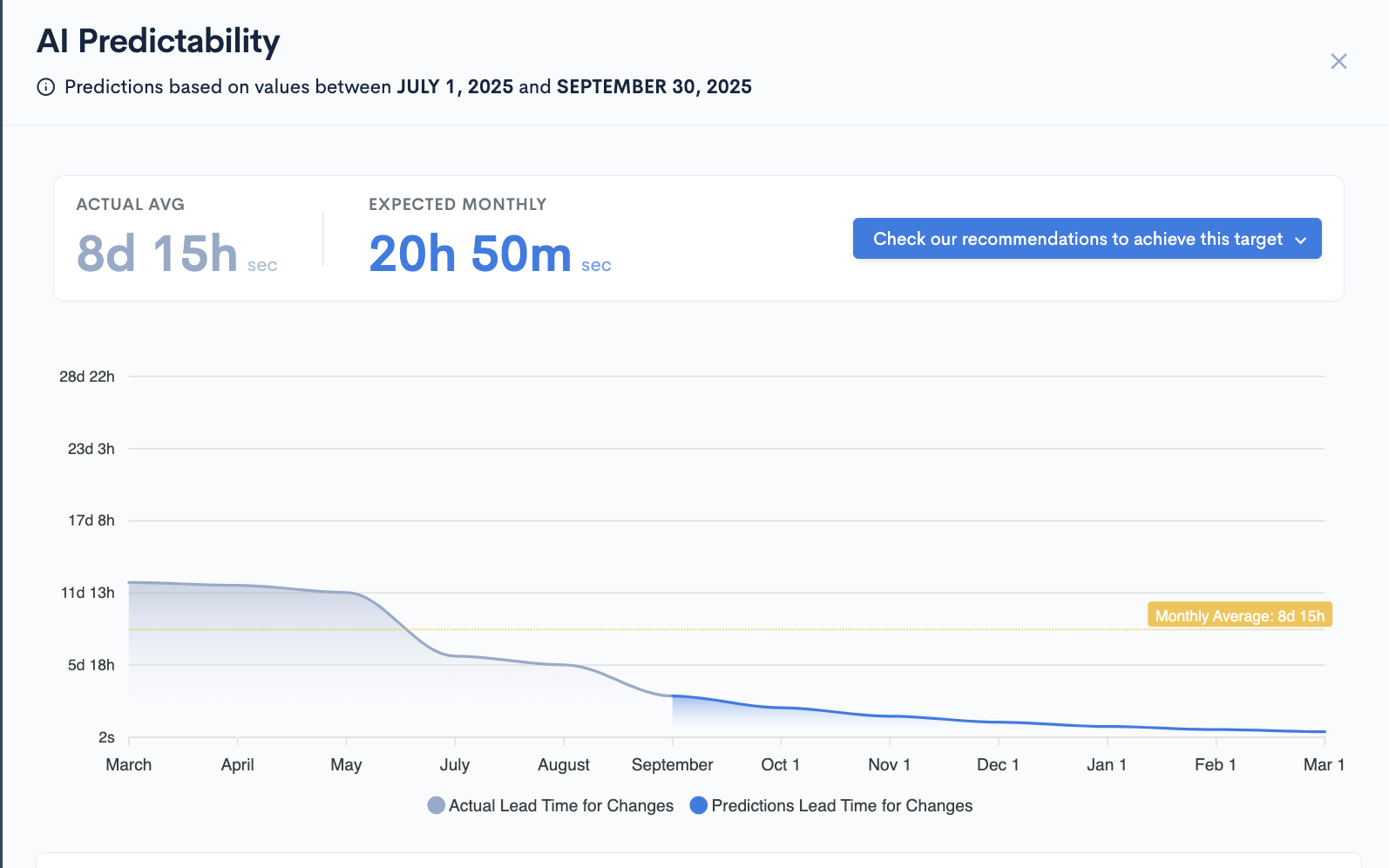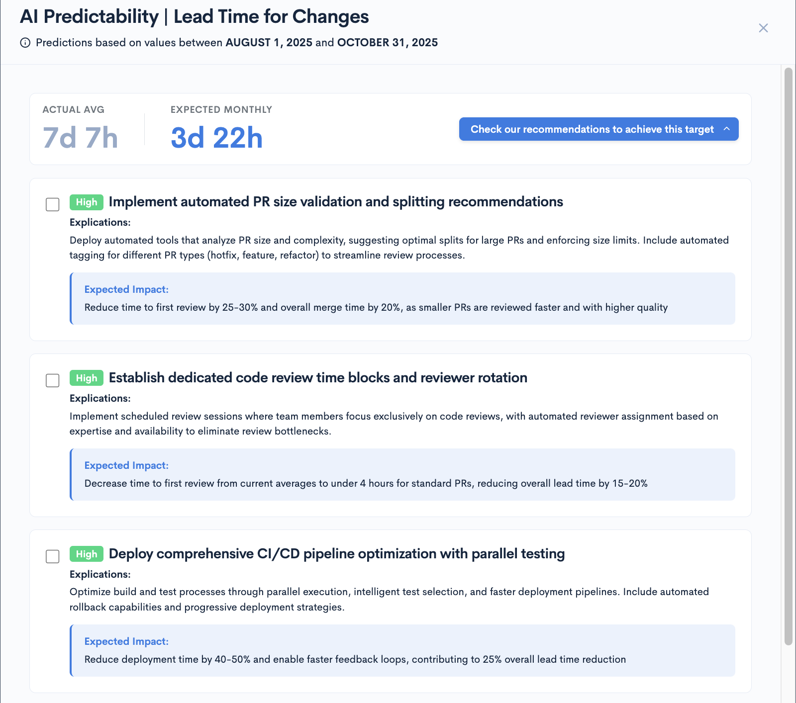 On the top there is the current average for the metric and the expected average if recommendations are followed.