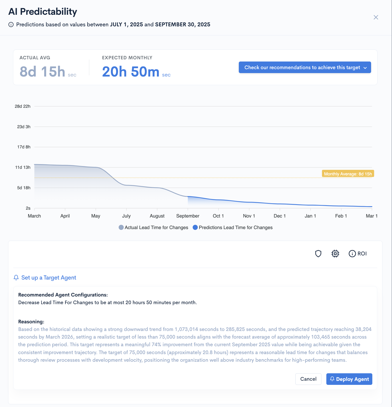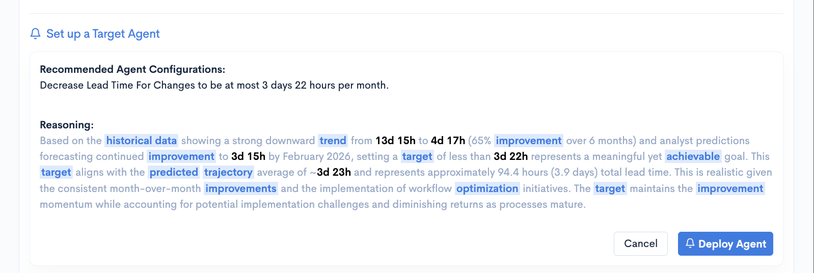 To see how different teams are progressing towards the goal, you can deploy a target agent. It will show the reasoning based on historical data. To start it simply click Deploy Agent.