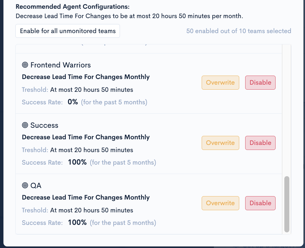 This will open a modal where you can Overwrite or Disable the set targets for individual teams.
