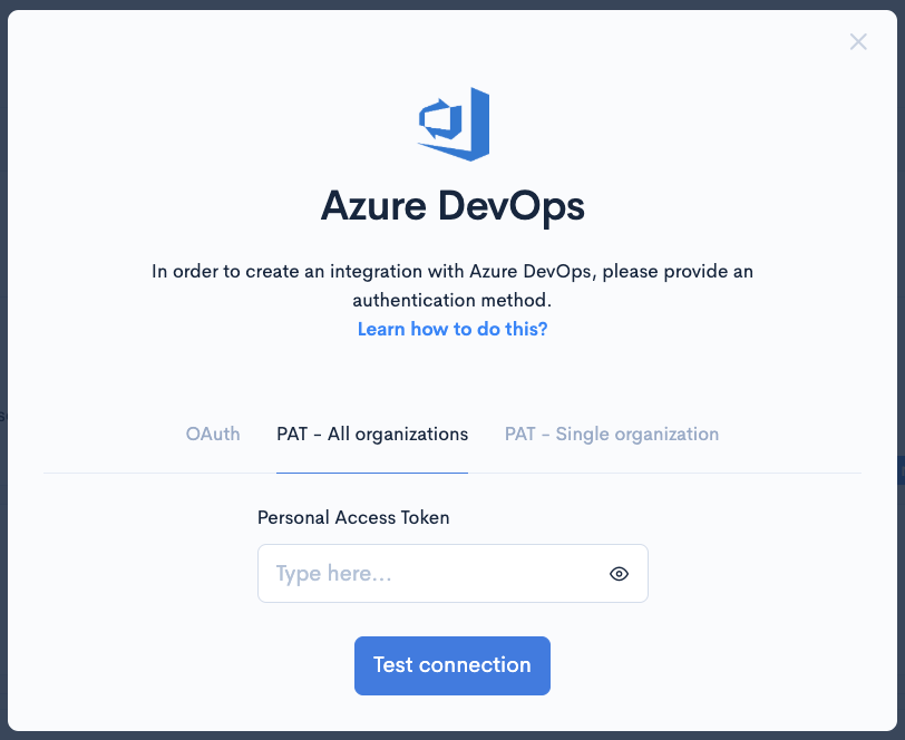 Note: If you scoped your token to a single organization, navigate to the PAT - Single organization window and enter your organization as well.