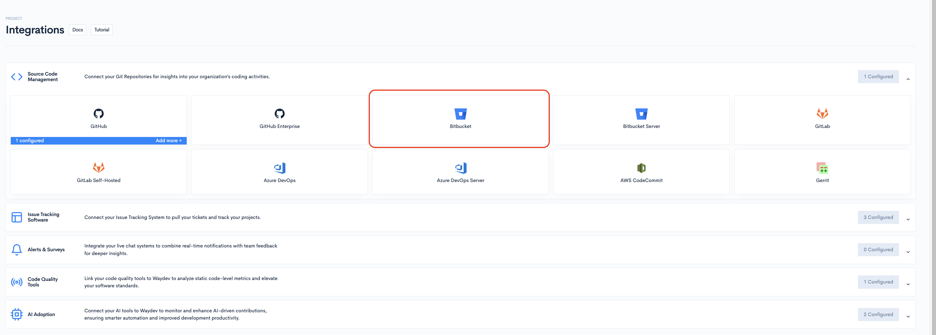 If you use Bitbucket.com, you can connect your account very easily through our OAuth connection. Just connect your account, select the relevant repos for your project, and wait to process your data.