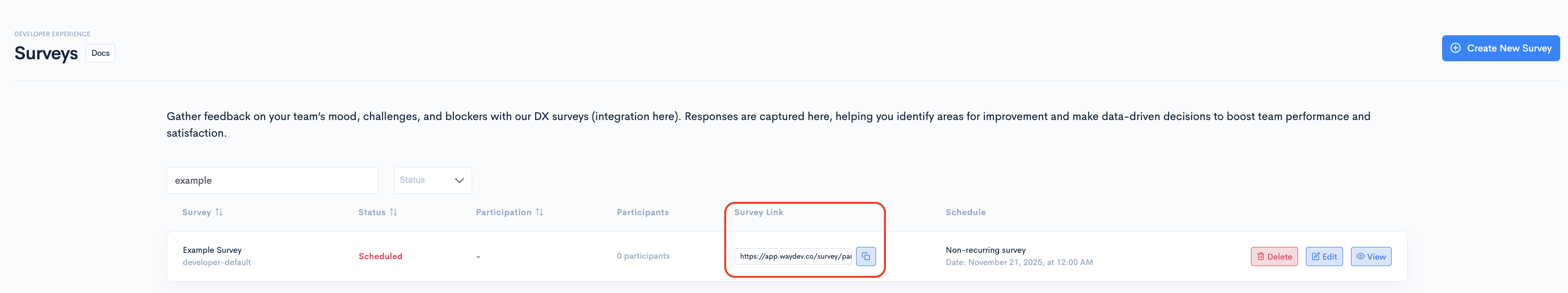 Our Developer Experience (DX) module allows you to send surveys via Slack (with Teams integration coming soon) to get real-time feedback on your team’s mood, challenges, and blockers. The responses are ingested directly into Waydev, helping you identify areas for improvement and make data-driven decisions to boost team performance and satisfaction.