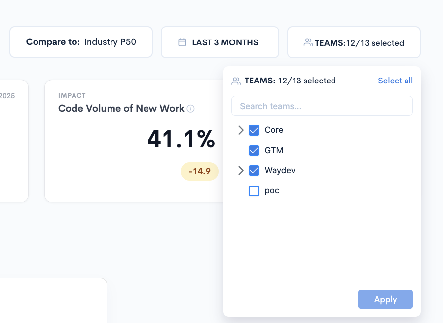 Select the Group (Project, Workspace, or Initiative) for which the metrics should be displayed.