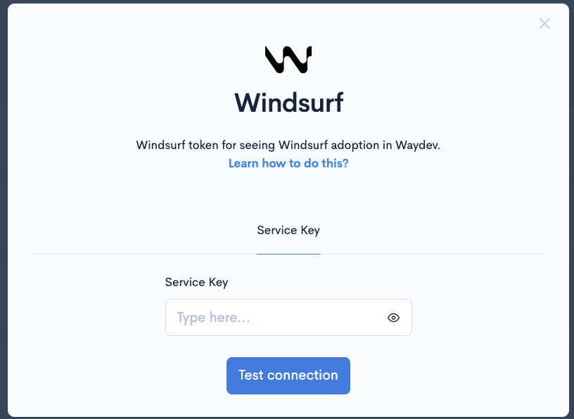 Create a Windsurf service key following these instructions: Creating a service key. Please note that Windsurf service keys inherit the permissions of the admin user who generates the key—in order to access analytics APIs, the admin user must have the Teams Read-only permission.